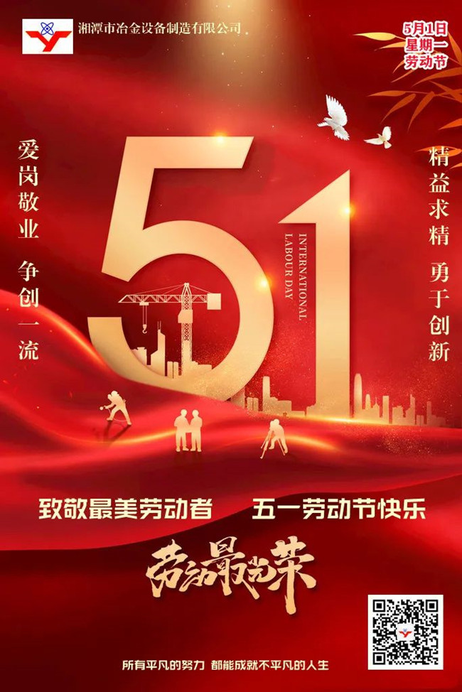 值此五一國際勞動節(jié)來臨之際,湘潭市冶金設備制造有限公司祝所有朋友、伙伴和家人們:五一快樂!家庭幸福!假期開心!