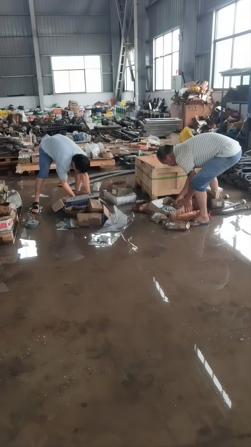 黨員張忠是在清晨六點(diǎn)多就奔赴車間前線,指揮員工譚正武迅速吊起8米立車,并與門衛(wèi)值班人員黃永輝一起搶救倉庫物資。7點(diǎn)后,干部們冒雨陸續(xù)趕往車間搬運(yùn)物資,加固設(shè)備,確保生產(chǎn)線關(guān)鍵節(jié)點(diǎn)的安全。盡管衣服濕透,汗水混著雨水滴落,卻不敢有絲毫松懈,隨時(shí)備戰(zhàn)應(yīng)急響應(yīng)。
