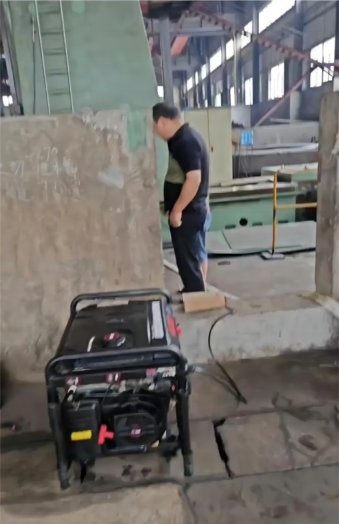 9點(diǎn)左右,車間突發(fā)停電,設(shè)備面臨被水浸的危險(xiǎn)。劉美林總經(jīng)理果斷決策,采購發(fā)電機(jī)和配件,搶險(xiǎn)團(tuán)隊(duì)安裝調(diào)試后及時(shí)抽出立車地下水。因一臺不夠,喻斌也冒雨采購了一臺大功率發(fā)電機(jī),為搶險(xiǎn)工作提供了有力支持。